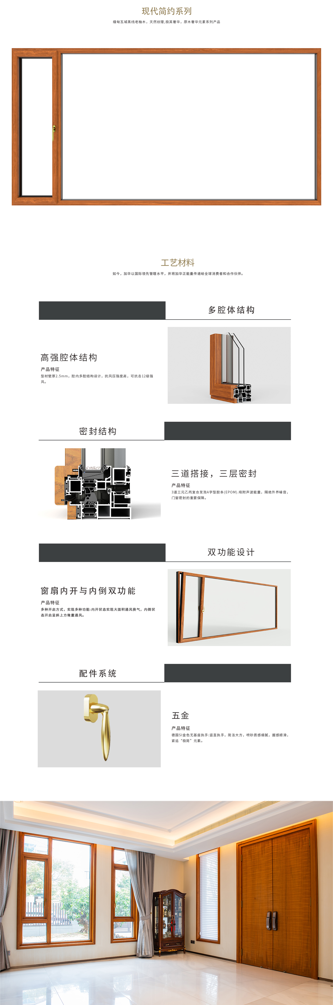 JH113柚木包鋁系列內開內倒窗